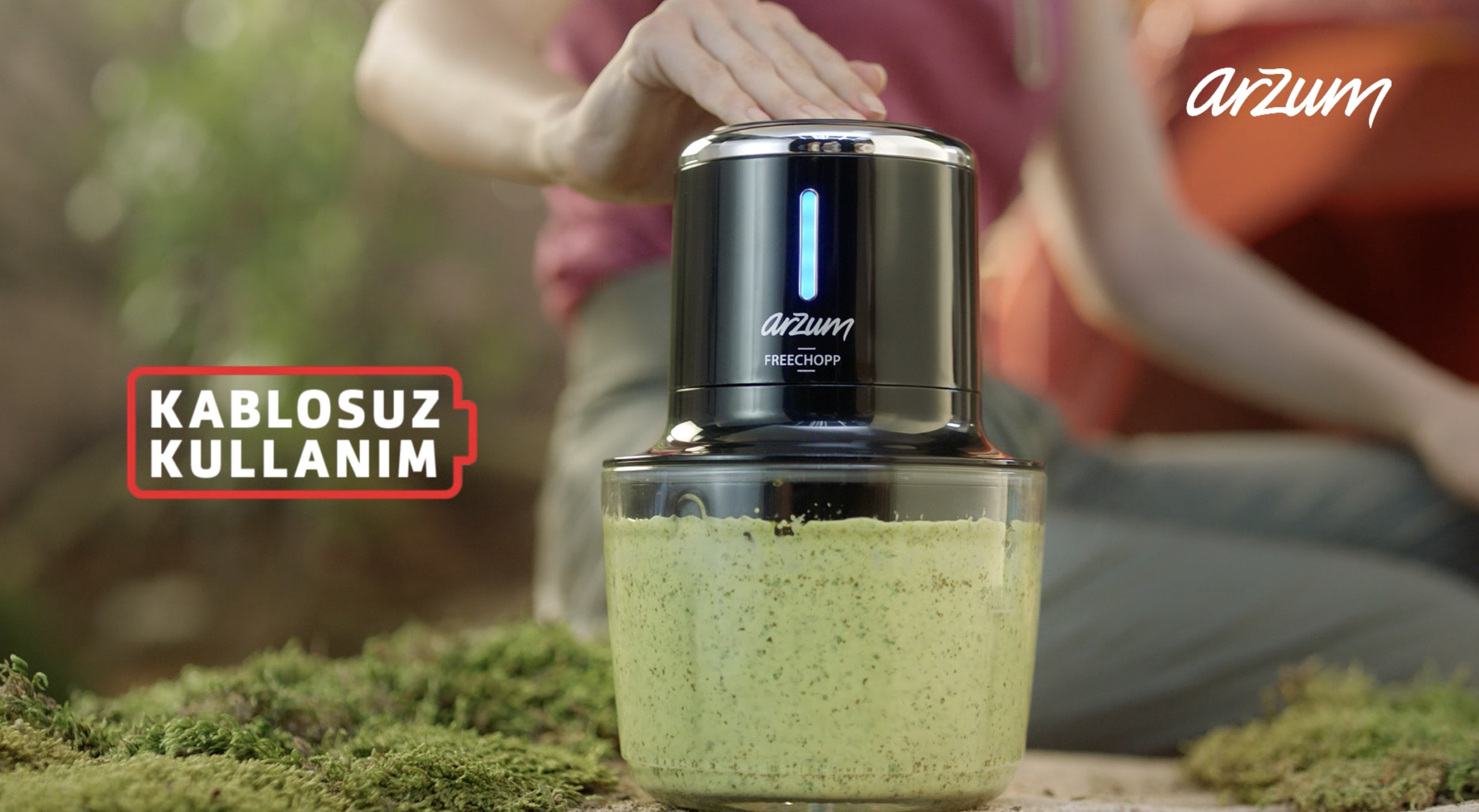 Arzum Freechopp filminin ilk sahnesinde bir arkadaş grubunu, ormanda neşe içinde çadır kurmaya çalışırken görüyoruz. Bu eğlenceli kamp ortamında herkes üzerine düşeni yaparken, aralarından birinin doğrayıcıyı evde unuttuğunu söylemesiyle keyifli hava yerini karamsarlığa bırakıyor. Kamp sakinleri ‘Ne anlamı kaldı şimdi kampın?’ diye kara kara düşünürken sahneye Arzum Freechopp Cam Hazneli Şarjlı Doğrayıcı ile hazırlanan lezzetler giriyor ve ‘Arzum Freechopp kablosuz özelliğiyle en sevdiğiniz lezzetleri, hem evinizde hem de istediğiniz yerde sunuyor’ mesajı veriliyor.